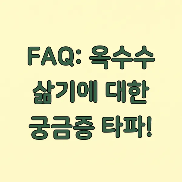 Q. 옥수수 삶을 때 설탕을 꼭 넣어야 하나요? A. 꼭 필수적인 재료는 아니에요. 옥수수 자체의 단맛을 좋아하시면 설탕 없이 삶아도 괜찮아요. 하지만 설탕을 약간 넣어주면 옥수수 고유의 단맛을 더 끌어올리는 데 도움이 된답니다.
