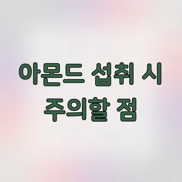 아몬드 알레르기가 있는 분들은 섭취에 주의해야 하며, 생아몬드보다는 볶은 아몬드가 소화에 더 용이할 수 있어요. 가공되지 않은 생아몬드에는 피트산이 함유되어 있어 영양소 흡수를 방해할 수도 있습니다.