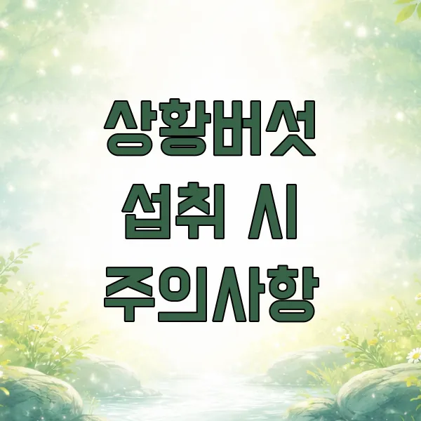 상황버섯은 다양한 건강 효능을 가지고 있지만, 섭취 시 몇 가지 주의할 점이 있어요. 모든 사람에게 동일한 효과가 나타나는 것은 아니며, 개인의 체질이나 건강 상태에 따라 다르게 작용할 수 있답니다. 특히 임산부나 수유부 는 섭취 전에 반드시 전문가와 상담하는 것이 좋아요.