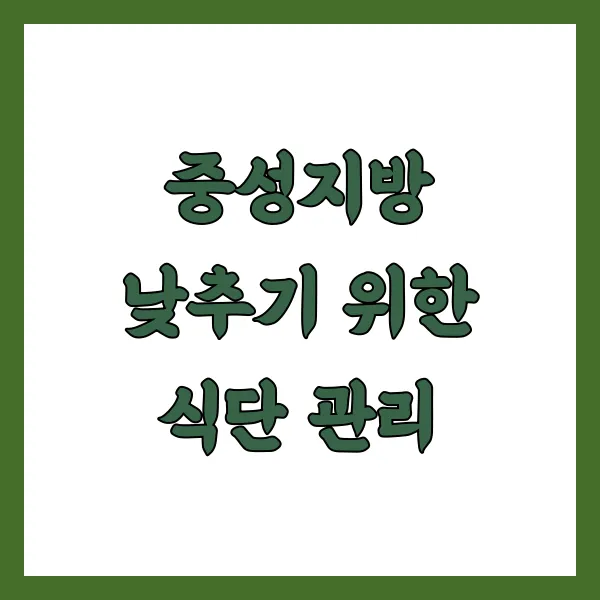 중성지방 수치를 낮추기 위해서는 식단에서 지방의 종류와 양을 조절하는 것이 중요합니다. 포화지방과 트랜스지방 섭취를 줄이고, 불포화지방산(오메가-3 지방산, 올리브 오일 등) 섭취를 늘리는 것이 좋습니다. 예를 들어, 붉은 육류 대신 생선을 섭취하고, 튀김 대신 굽거나 찌는 조리법을 선택하는 것이 도움이 됩니다. 또한, 견과류와 씨앗류를 적당량 섭취하는 것도 건강한 지방 섭취에 기여할 수 있습니다.