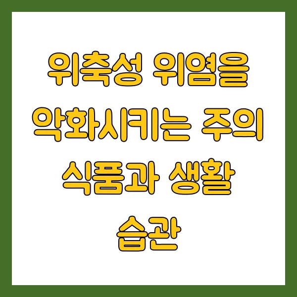 현대인의 식생활에서 쉽게 찾아볼 수 있는 가공식품과 트랜스지방은 위 건강에 치명적일 수 있습니다. 건강한 위를 위해서는 가공식품 섭취를 최소화하고 바른 생활 습관을 유지하는 것이 중요해요. * **인스턴트식품, 패스트푸드**: 방부제, 인공 첨가물, 다량의 소금과 지방이 함유된 인스턴트식품이나 패스트푸드는 위가 소화하기 어렵고 염증을 유발할 가능성이 높아요. 이런 음식들은 위 점막에 지속적인 부담을 주게 됩니다. 편리하다는 이유로 자주 찾다 보면 위 건강은 빠르게 나빠질 수 있어요. * **튀김류, 기름진 음식**: 트랜스지방이 많은 튀김류나 기름진 음식은 위 배출 시간을 지연시키고 위장 운동을 방해하여 소화 불량을 악화시킬 수 있어요. 위에서 소화되는 데 오랜 시간이 걸려 위 점막을 계속 자극하고 피로하게 만들죠. 위축성 위염 환자에게는 매우 좋지 않은 음식입니다. * **밀가루 음식**: 빵, 면류 등 정제된 밀가루 위주의 음식은 소화 과정에서 가스를 많이 생성하고 위장에 부담을 줄 수 있습니다. 특히 쫄깃한 식감의 면류나 갓 구운 빵은 소화시키기 더 어려울 수 있어요. 정제된 밀가루 대신 통밀이나 쌀가루 위주의 음식을 선택하는 것이 조금 더 낫지만, 위가 민감하다면 최대한 줄이는 것이 좋습니다. * **잘못된 습관**: 식사를 너무 빨리 하거나, 불규칙하게 식사하는 습관, 식사 후 바로 눕는 습관 등은 위 건강에 좋지 않습니다. 또한, 스트레스와 흡연은 위축성 위염을 악화시키는 주범이니, 스트레스 관리와 금연은 필수적인 생활 습관 개선 항목이에요. 이 모든 주의사항을 지키는 것이 위를 보호하는 식단을 완성하는 중요한 퍼즐 조각입니다.