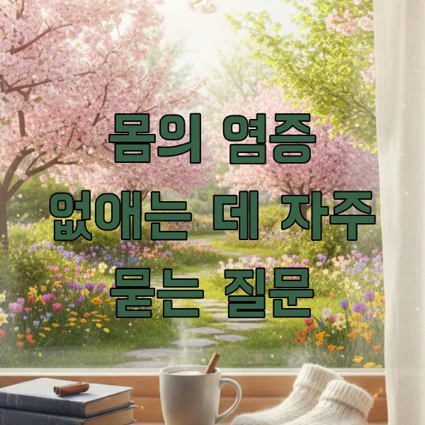 Q1. 몸에 염증이 있다는 신호는 무엇인가요? A1. 만성 염증은 겉으로 잘 드러나지 않는 경우도 많지만, 평소 느끼는 피로감, 소화 불량, 관절 통증, 피부 트러블, 잦은 감기 등 다양한 증상으로 나타날 수 있어요. 평소 내 몸의 작은 변화를 잘 살피는 것이 중요 하답니다. Q2. 염증을 없애는 데 도움이 되는 특정 영양제가 있나요? A2. 오메가-3 지방산, 비타민 C, 비타민 D, 커큐민 등은 항염증 효과가 있다고 알려져 있어요. 하지만 영양제는 어디까지나 보조적인 수단 일 뿐, 건강한 식단과 생활 습관이 우선되어야 한다는 점 꼭 기억해주세요. Q3. 염증이 심하면 꼭 병원에 가야 하나요? A3. 네, 물론입니다. 만약 염증으로 인한 통증이 너무 심하거나 오래 지속된다면, 반드시 병원을 방문하여 정확한 진단과 치료 를 받는 것이 가장 중요하고 안전한 방법이랍니다. 전문가의 도움을 받는 것이 확실히 효과적이에요.